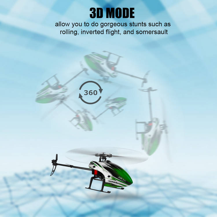 3D Mode: With a 3-axis gyroscope, the control is responsive and the aircraft can easily make stunts such as roll and inverted flight.