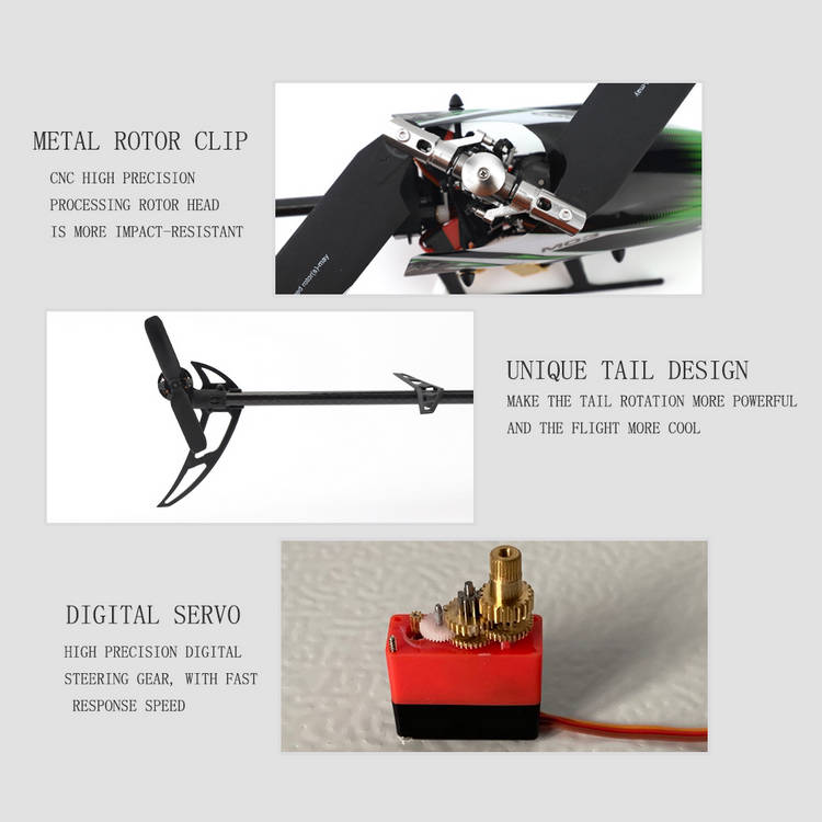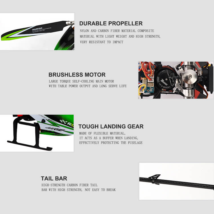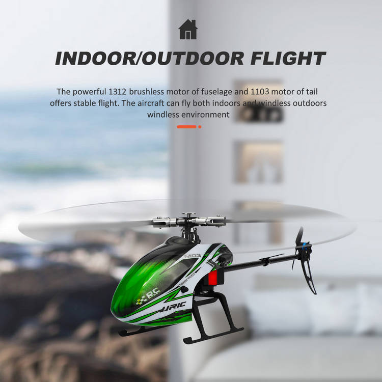 Indoor/Outdoor Flying: The powerful 1312 brushless motor of the fuselage and 1103 motor of the tail with wear-resistant gear offers stable flight. The aircraft can fly both indoors and windless outdoors.