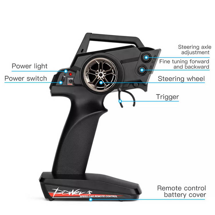 2.4G Remote Control Frequency: 2.4GHz Radio System with anti-jamming capability allows us to race at the same time on the same track. The control distance is up to 100 meters. Proportional throttle, better operability.