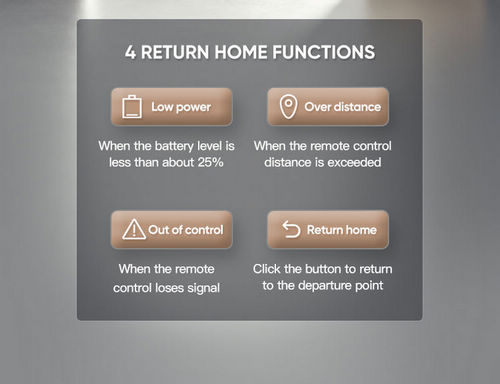 1. GPS returns to the take-off point with one key, low power return, no signal.