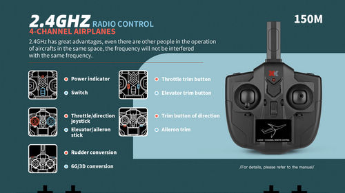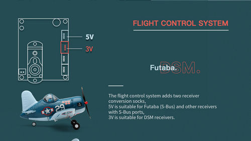 1. Four-channel design, easy to learn, fan blades, motors, and wings are removable for easy replacement, and the flight control system adds two receiver conversion sockets. 5V is suitable for FUTABA (S-BUS) and other belts (S-BUS) Port of the receiver, 3V is suitable for DSM receivers. Customers can control the product through an external receiver.